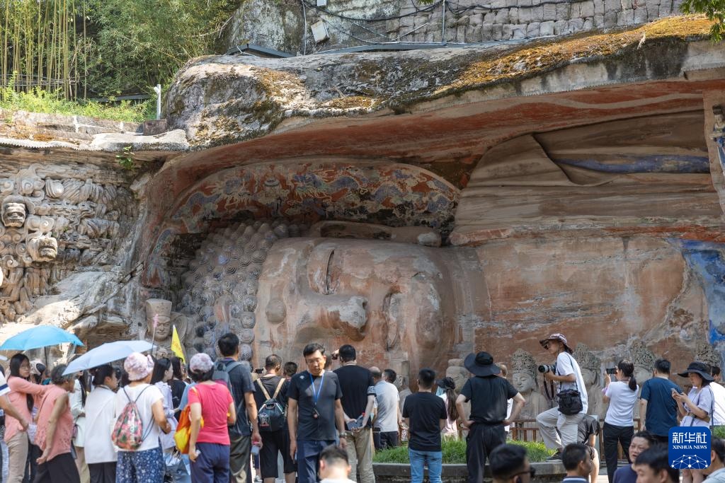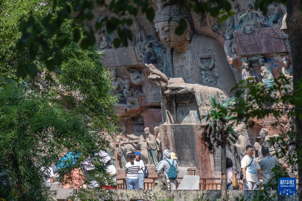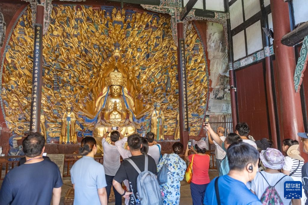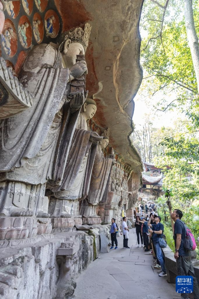 9月27日,游客在重庆大足石刻景区参观出现在国产3A游戏《黑神话:悟空》中的“千手观音”场景。