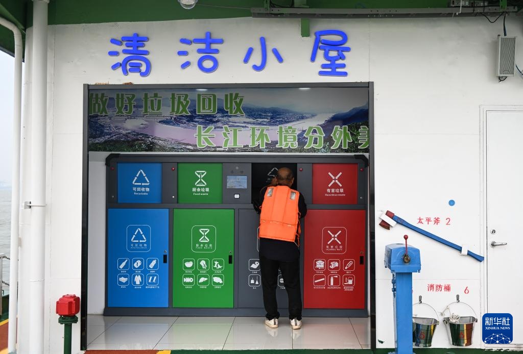 9月27日,船员在服务区投放垃圾。