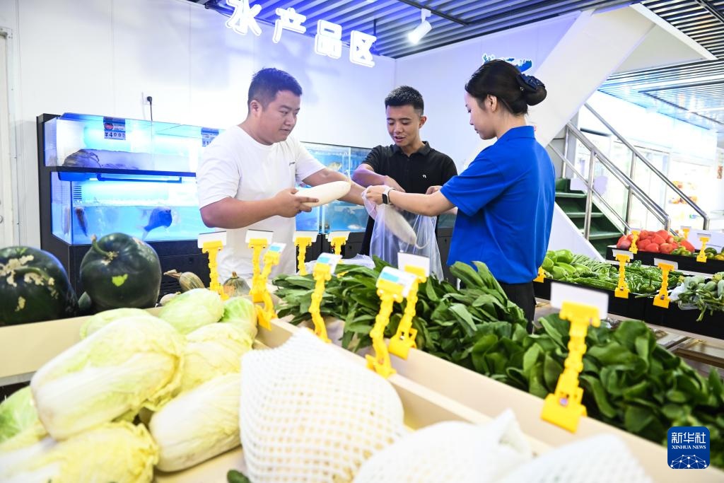9月27日,船员在服务区超市购买蔬菜。