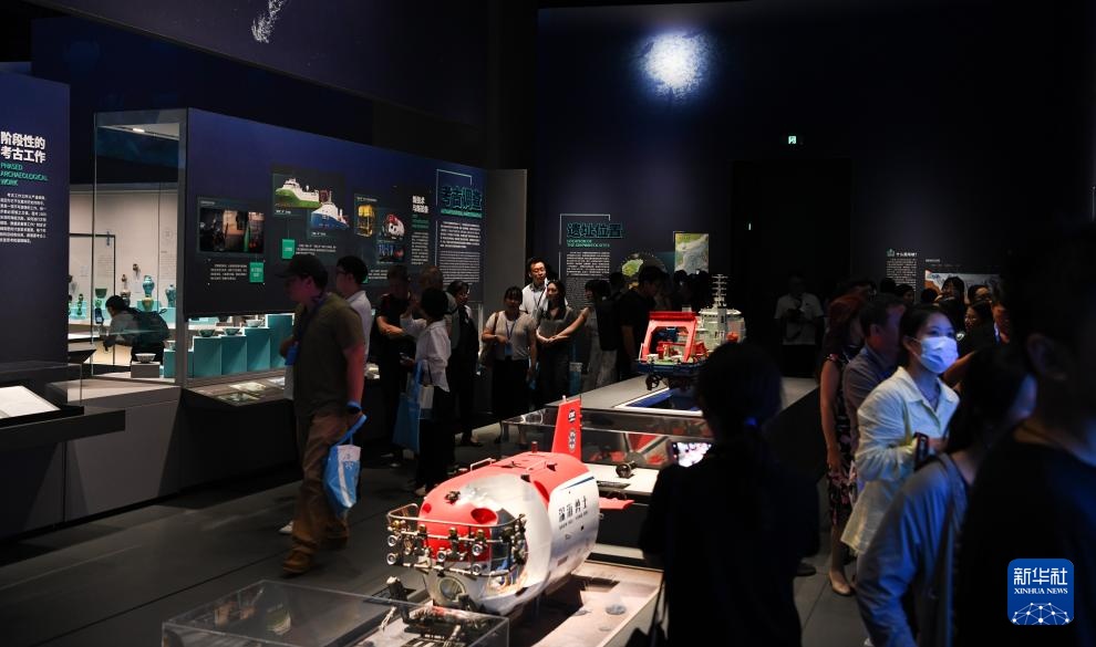 这是9月27日拍摄的在中国(海南)南海博物馆举行的南海西北陆坡一二号沉船考古成果特展开幕式现场。