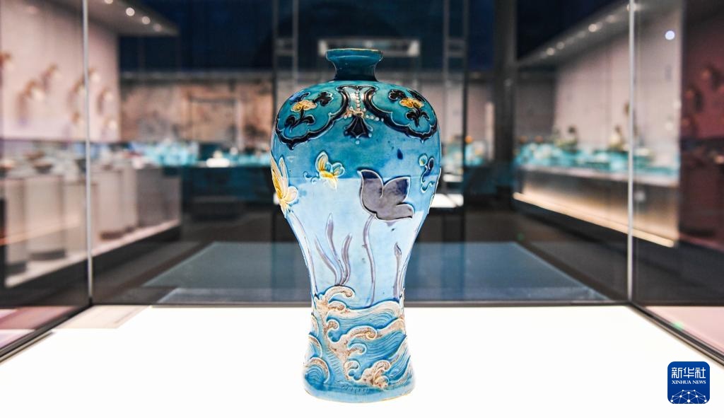 这是9月27日在特展上拍摄的展品——珐华孔雀绿釉莲池纹瓶梅。