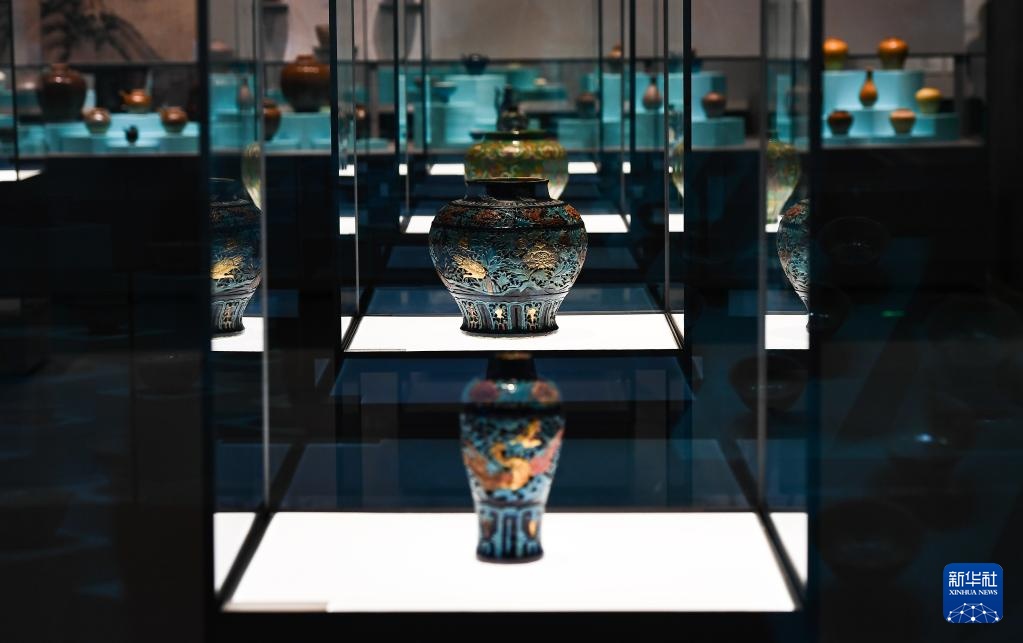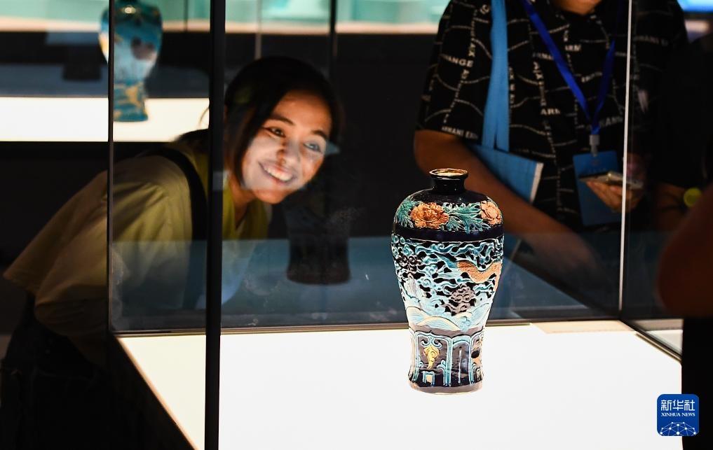 9月27日,观众参观特展展品——珐华贴金镂空孔雀牡丹纹大罐。