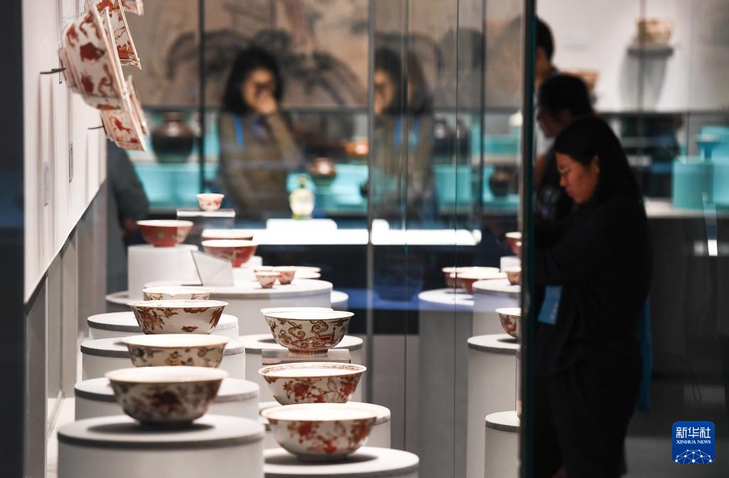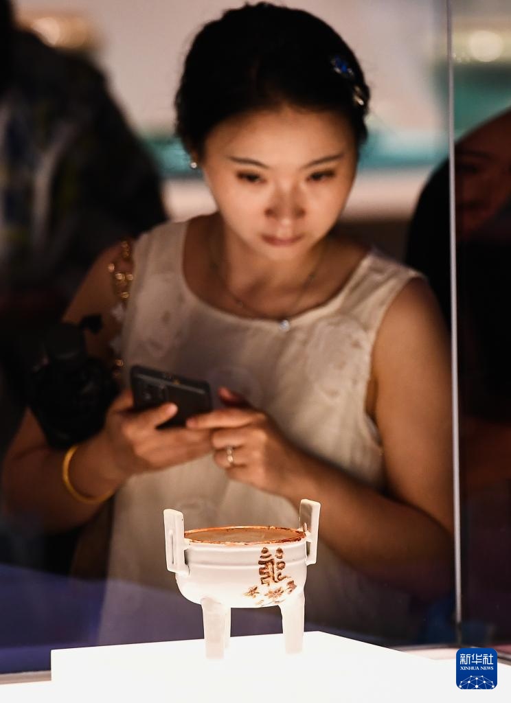 9月27日,观众在参观特展中的展品——白釉双耳描金麒麟纹鼎式三足炉。