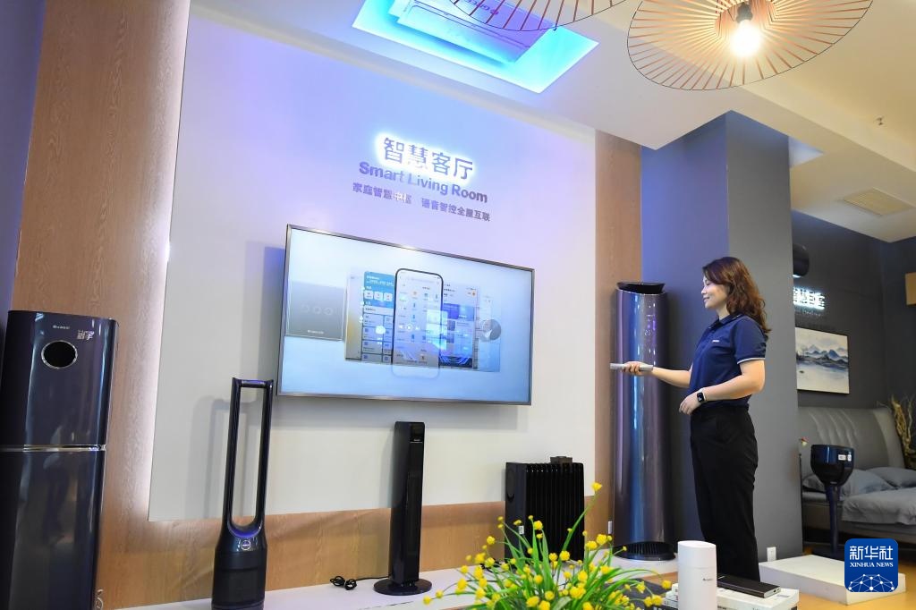 9月27日,在宁乡市金洲新城的格力暖通制冷设备有限公司,工作人员展示智能家电的使用场景。