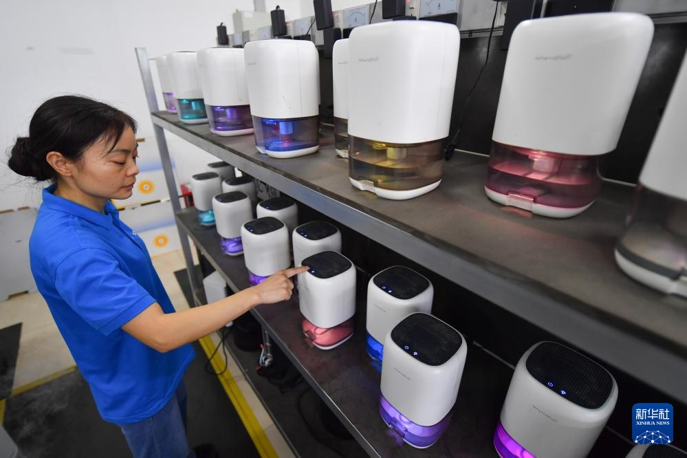 9月27日,在宁乡市金洲新城的湖南斗禾智能电器有限公司,工作人员在测试除湿器。