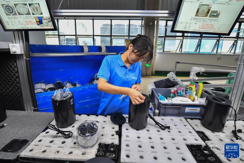9月27日,在宁乡市金洲新城的湖南斗禾智能电器有限公司,工作人员在生产空气净化器。