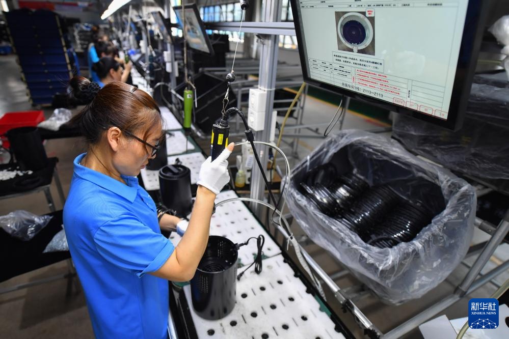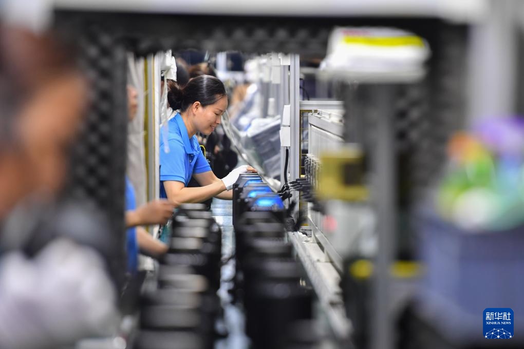 9月27日,在宁乡市金洲新城的湖南斗禾智能电器有限公司,工作人员在生产线上作业。