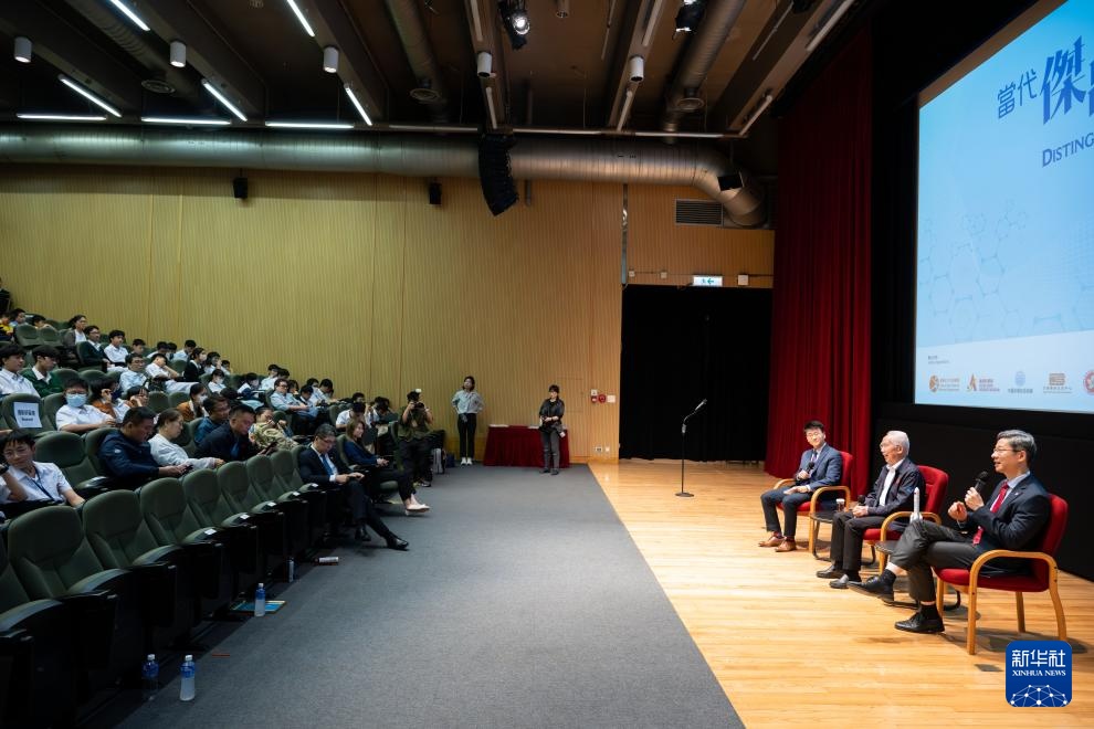 9月27日,龙乐豪(右二)和姚新(右一)回答学生提问。