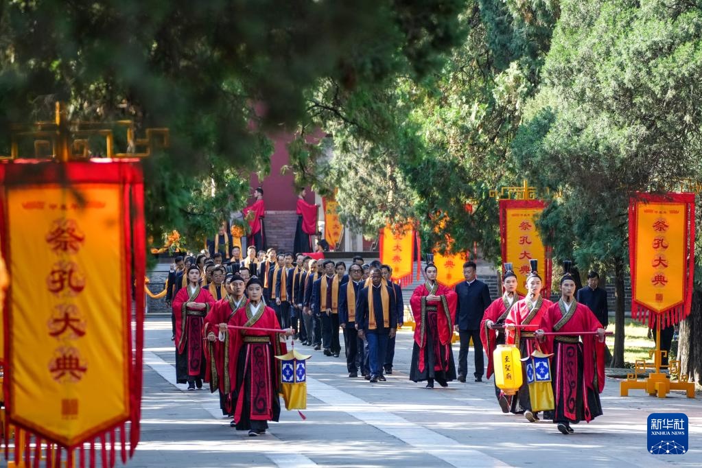 9月28日,在2024甲辰年公祭孔子大典上,参祭嘉宾步入曲阜孔庙。
