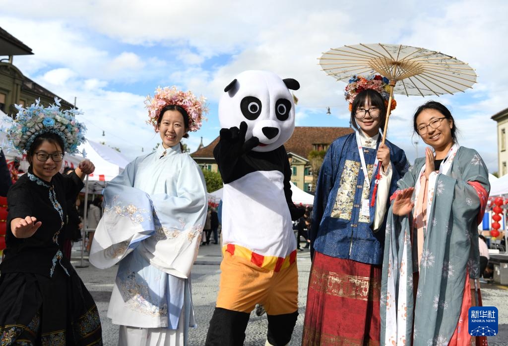 9月27日,在瑞士伯尔尼“遇见中国”文化节上,身穿民俗服饰的活动参与者合影。
