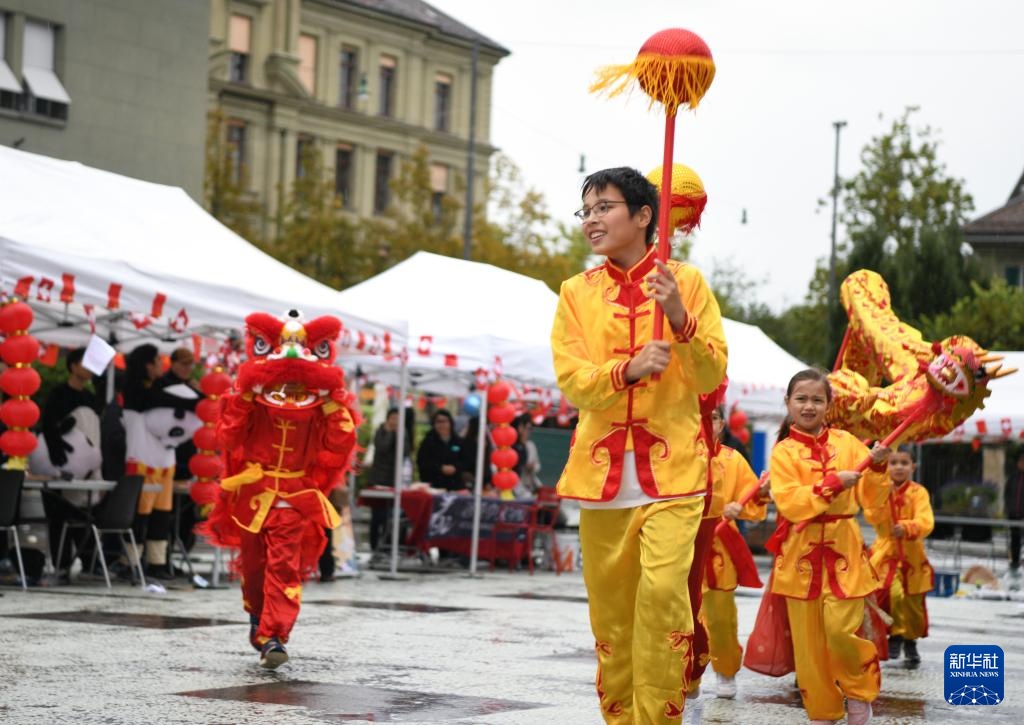 9月27日,在瑞士伯尔尼“遇见中国”文化节上,人们在表演舞龙舞狮。