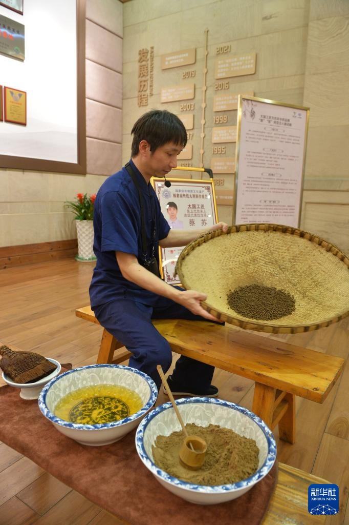 9月27日,桐君阁传统丸剂制作技艺第五代传承人蔡苏在太极医药城A区展示传统丸剂制作技艺。