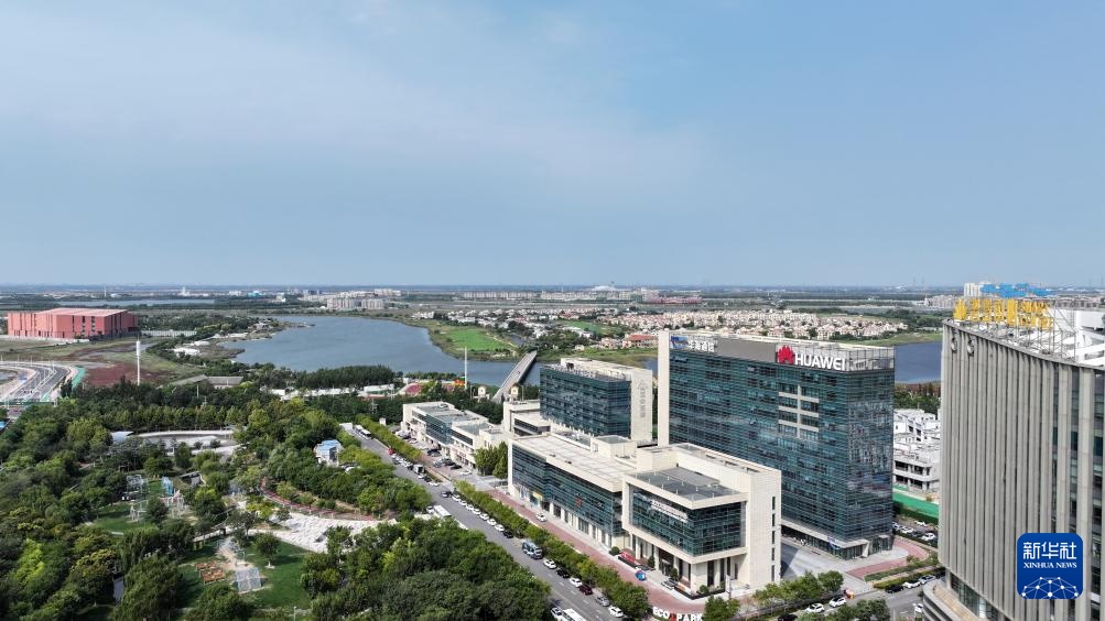 9月27日拍摄的中新天津生态城一景(无人机照片)。