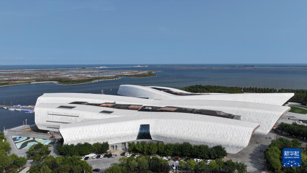 9月27日在中新天津生态城拍摄的国家海洋博物馆一景(无人机照片)。