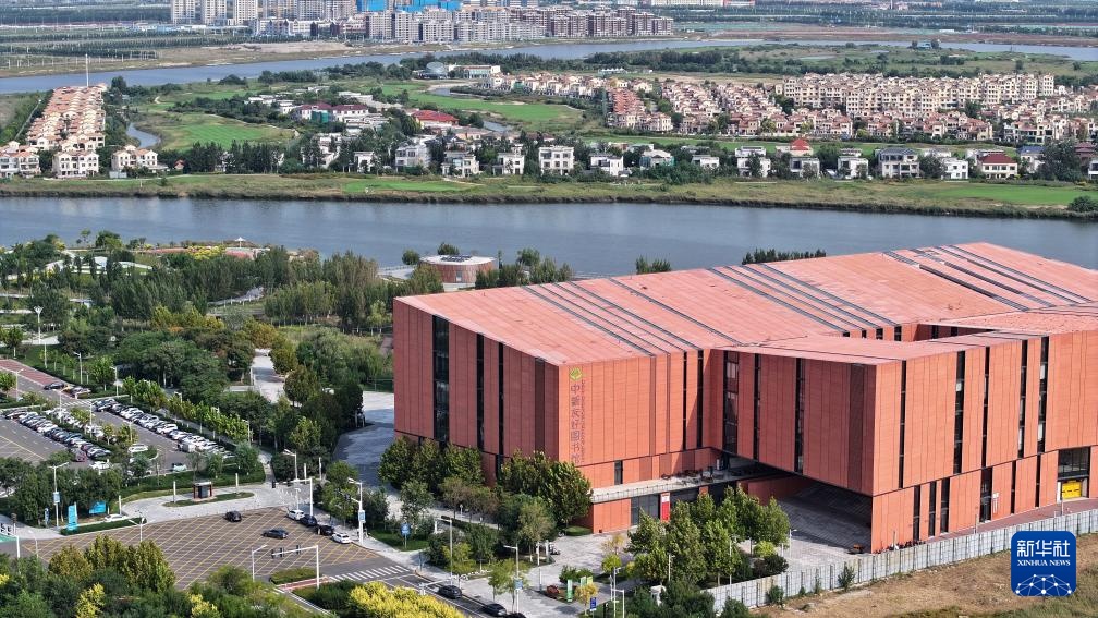 9月27日在中新天津生态城拍摄的中新友好图书馆一景(无人机照片)。