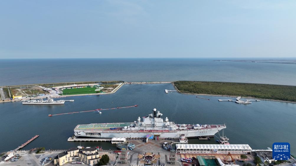 9月27日在中新天津生态城拍摄的泰达航母主题公园一景(无人机照片)。