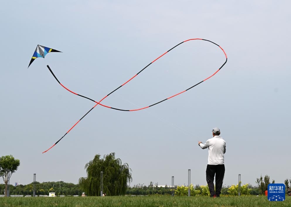 9月27日,市民在中新天津生态城中新友好公园内放风筝。