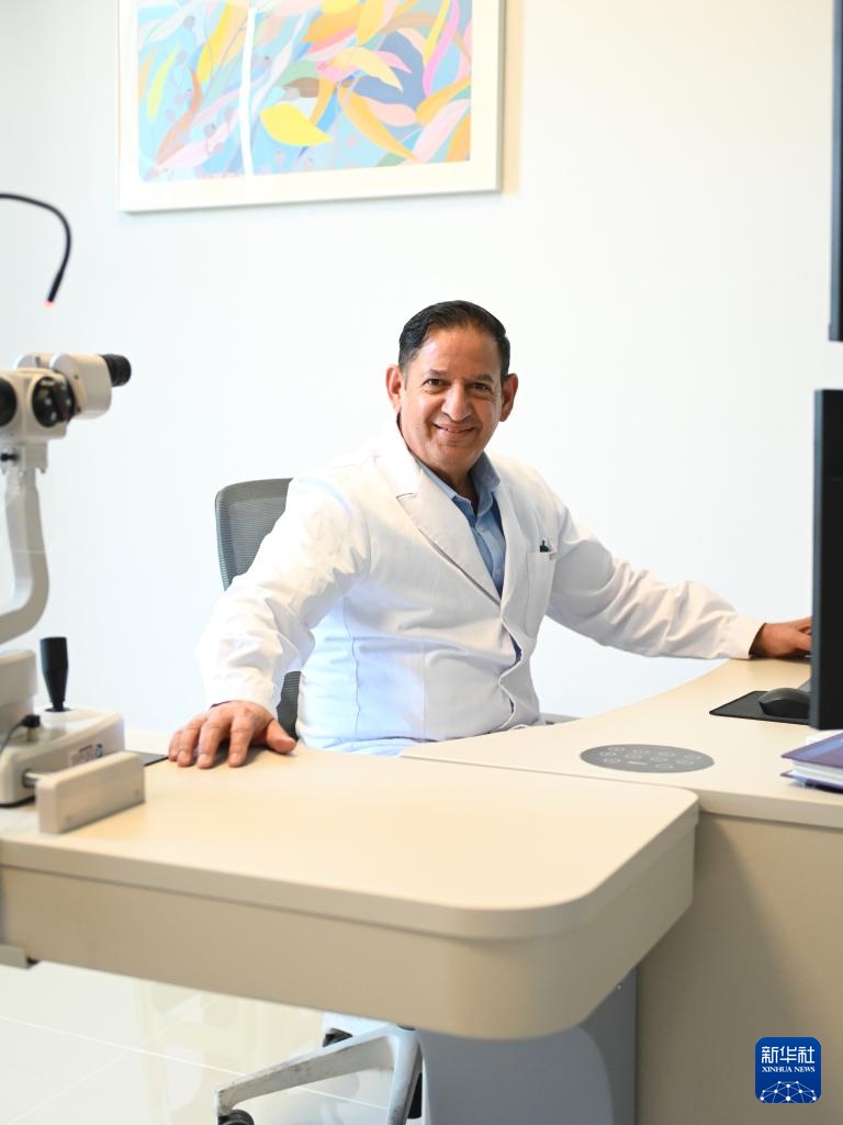 9月26日,伊西德罗在宁夏银川市爱尔眼科医院的诊室内工作。
