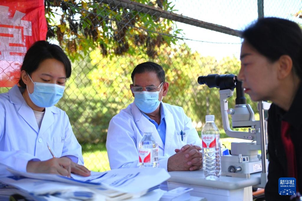 9月26日,伊西德罗(右一)在宁夏银川市景湖社区的眼科义诊现场工作。