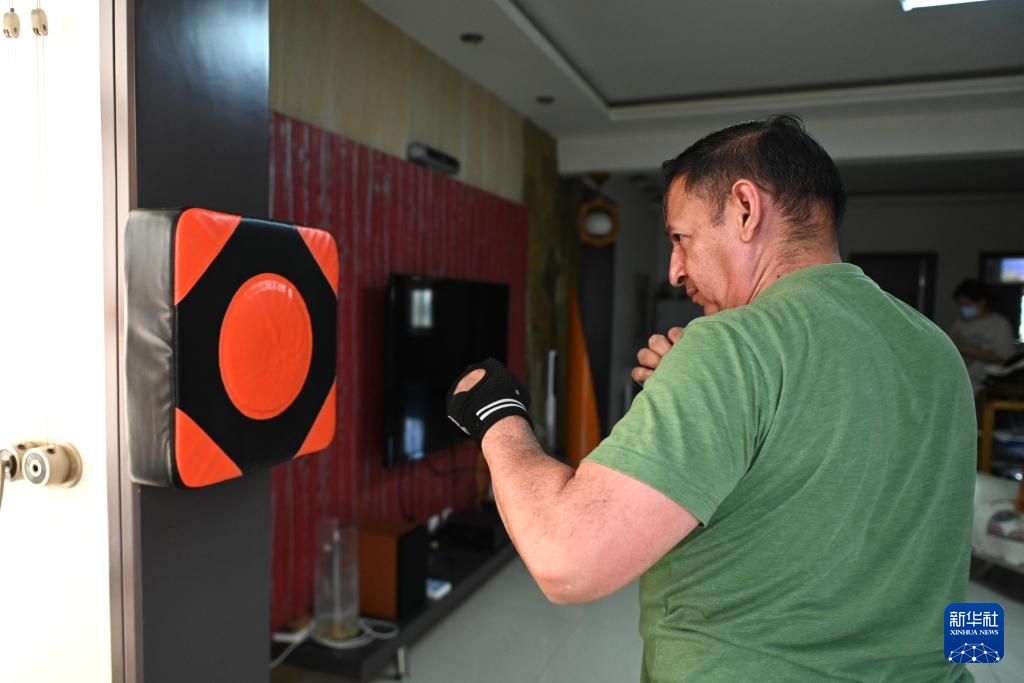 9月26日,伊西德罗在宁夏银川市的家中健身。