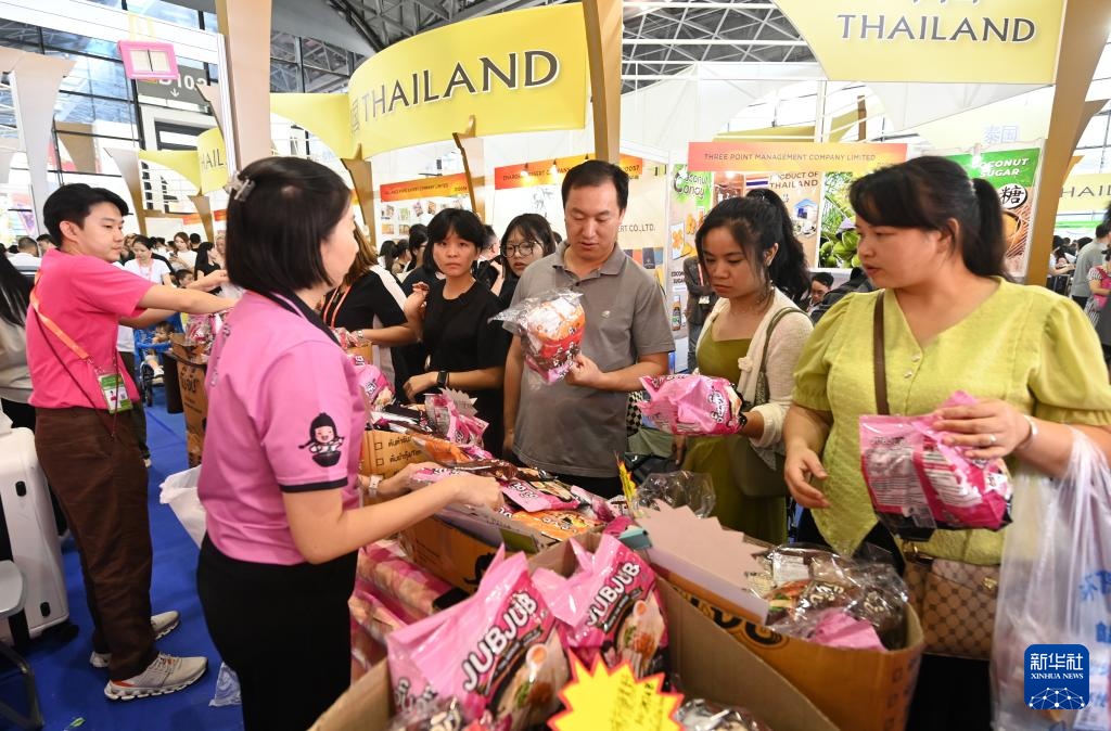 9月28日,在广西南宁国际会展中心,消费者在选购来自泰国的商品。