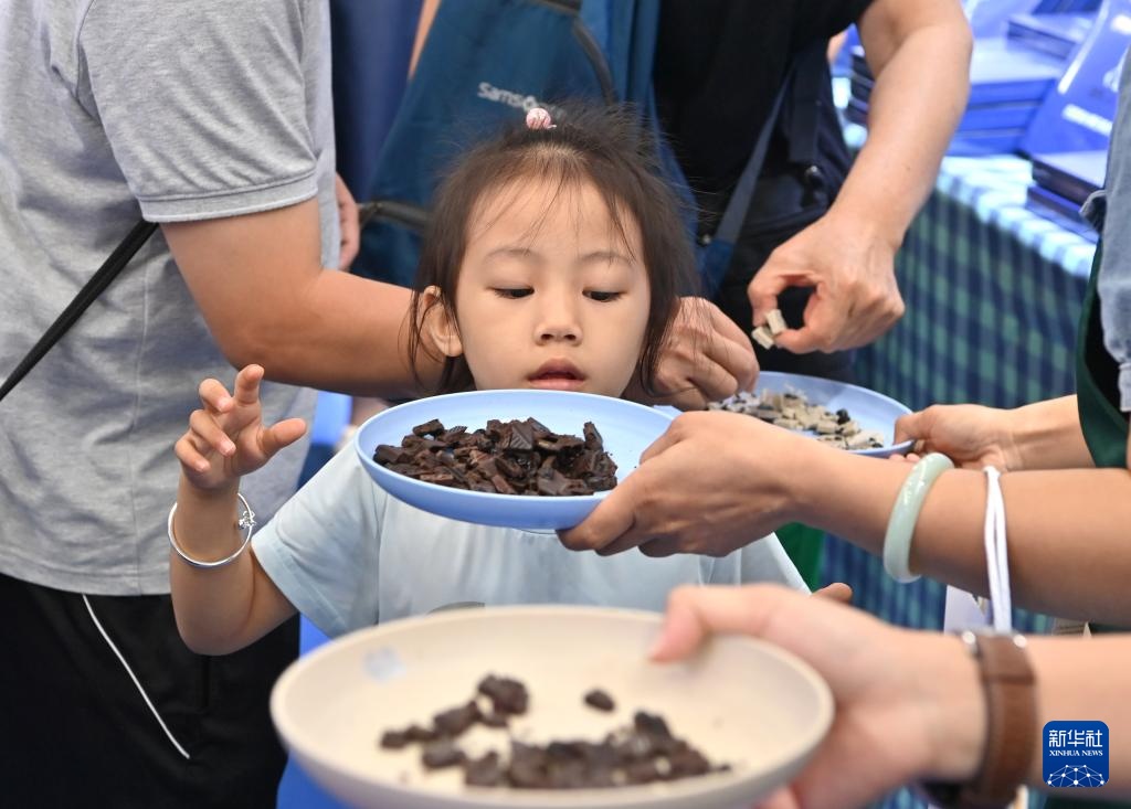 9月28日,小朋友在中国—东盟博览会“一带一路”国际展区品尝澳大利亚巧克力。