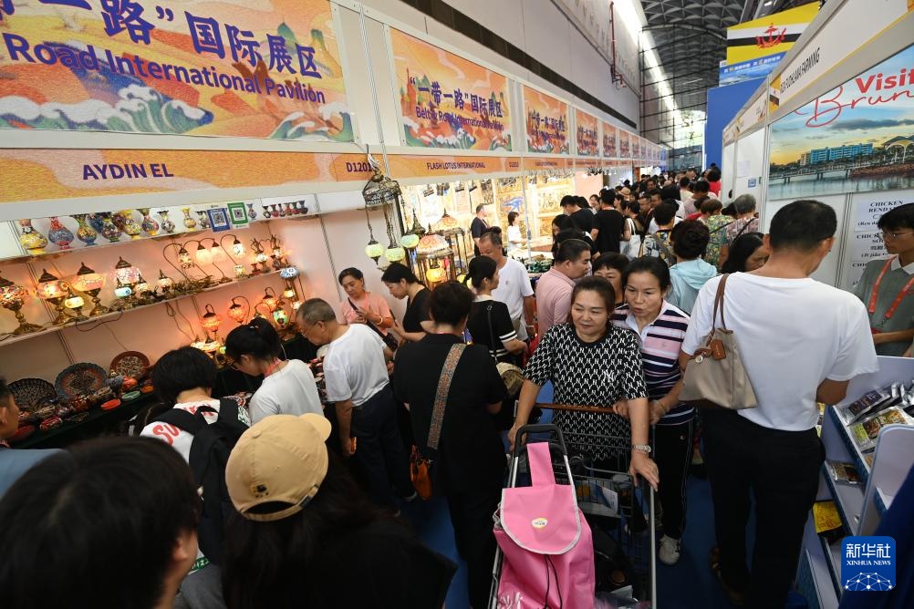 9月28日,在广西南宁国际会展中心,消费者在中国—东盟博览会“一带一路”国际展区选购商品。