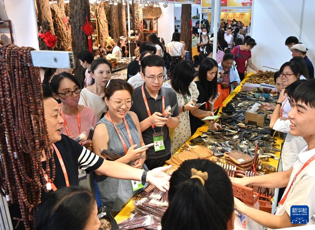 9月28日,观众在中国—东盟博览会越南商品馆挑选商品。