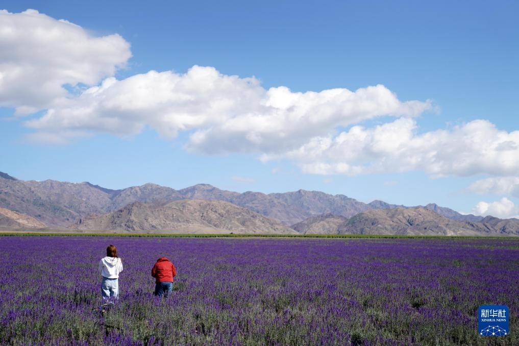 9月28日,在天山花海国家现代农业产业园区,游客在薰衣草花田里游玩。