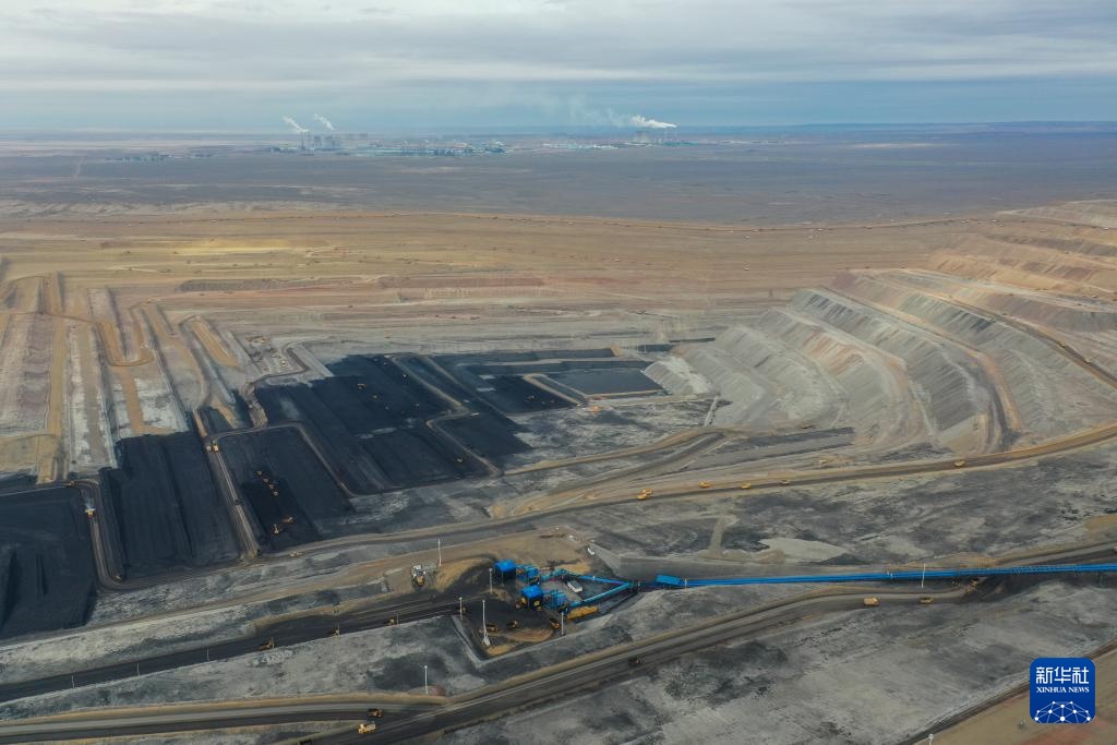 这是在国能新疆准东能源有限责任公司准东露天煤矿拍摄的作业现场(9月26日摄,无人机照片)。