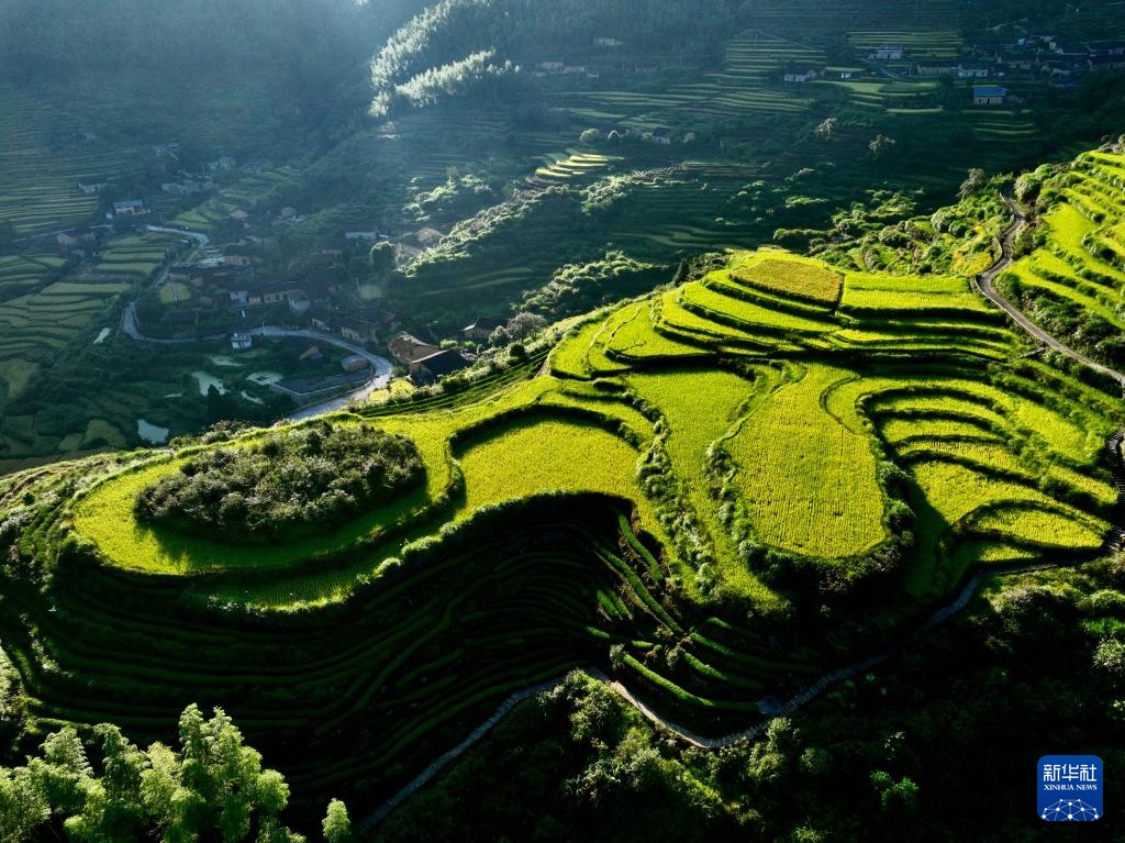 这是9月29日拍摄的福建省武夷山市吴屯乡后源村的稻田(无人机照片)。