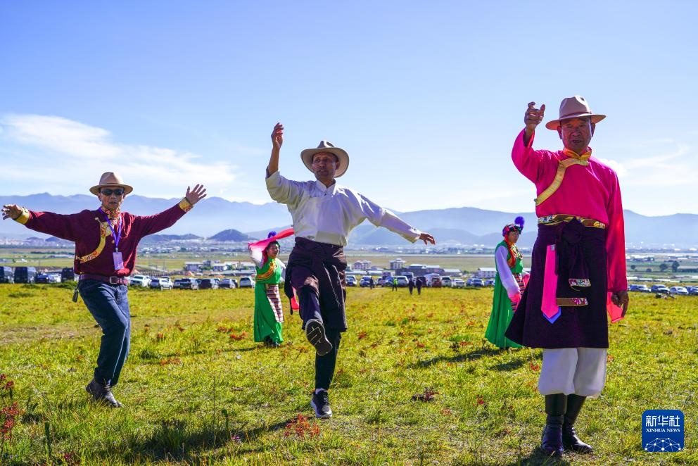 9月29日,当地群众在开幕式现场表演藏族舞蹈。