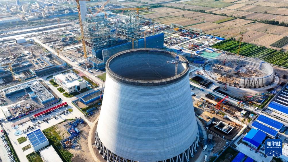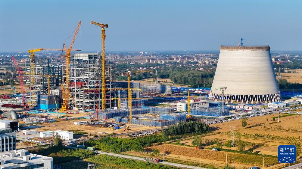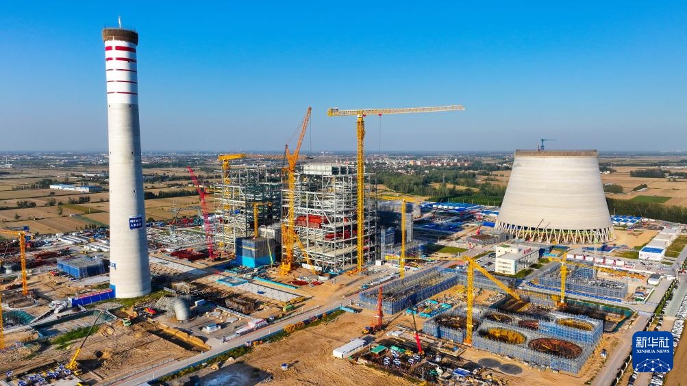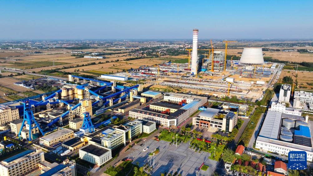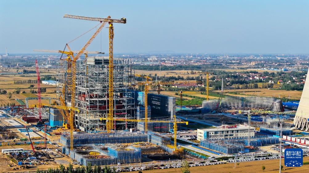 9月29日拍摄的位于山东省郓城县的大唐郓城630℃国家电力示范项目建设现场(无人机照片)。