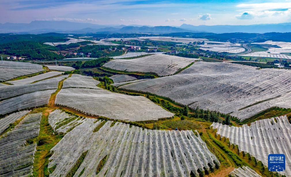 这是9月29日拍摄的昭通市超越苹果基地一景(无人机照片)。