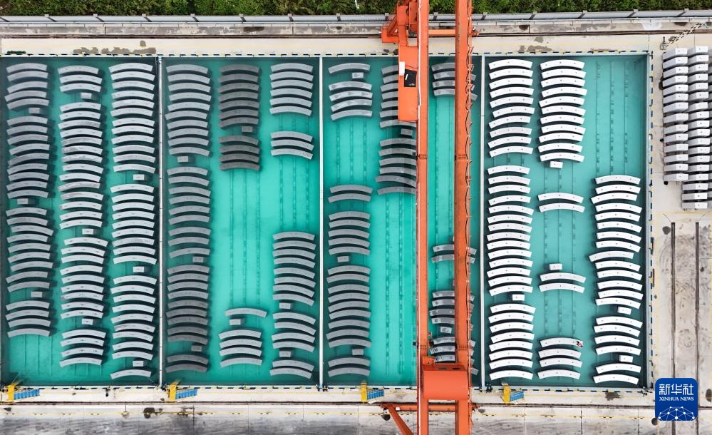 这是9月30日拍摄的成渝中线高铁青白江管片厂水养池(无人机照片)。