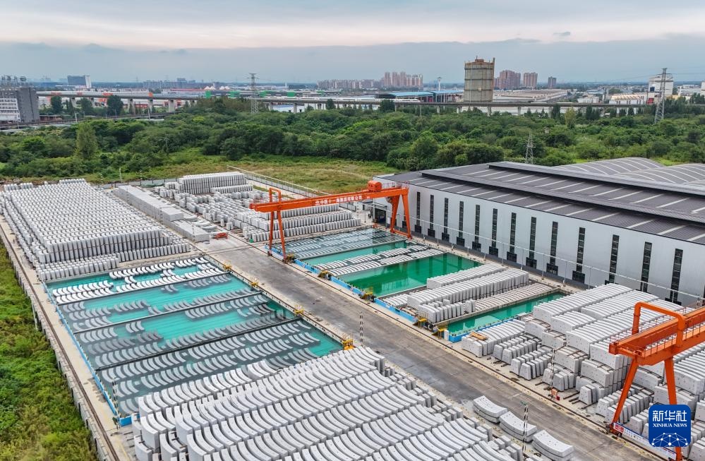 这是9月30日拍摄的成渝中线高铁青白江管片厂(无人机照片)。