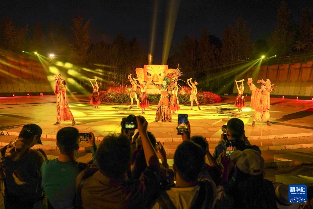 当日,为迎接即将到来的国庆假期,金沙遗址博物馆大型跨界文旅活动“夜游金沙·穿越古蜀——博物馆情景式导览演出秀”进行内测彩排,该演出将在10月1日至7日每晚7点半上演。
