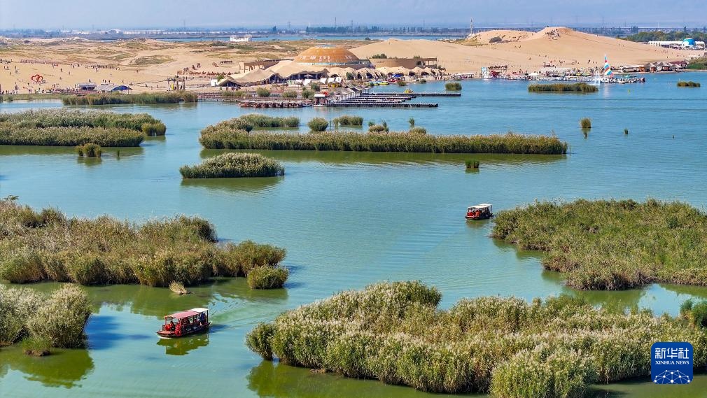 这是10月2日拍摄的沙湖景区风光(无人机照片)。