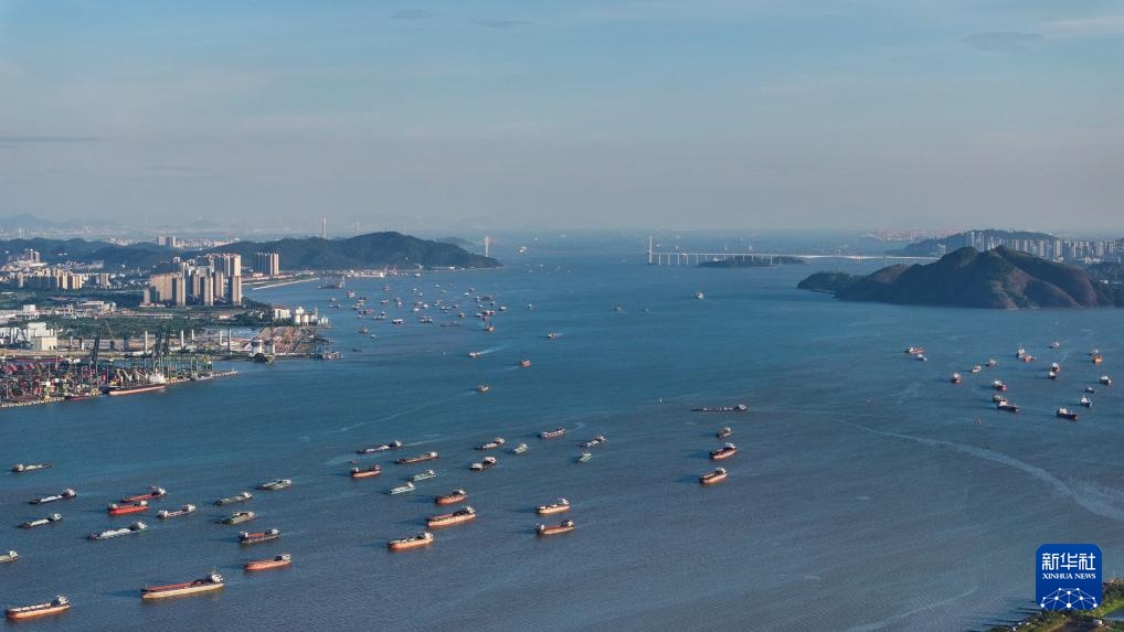 珠江口狮子洋水道的船舶来来往往(无人机照片,10月2日摄)。