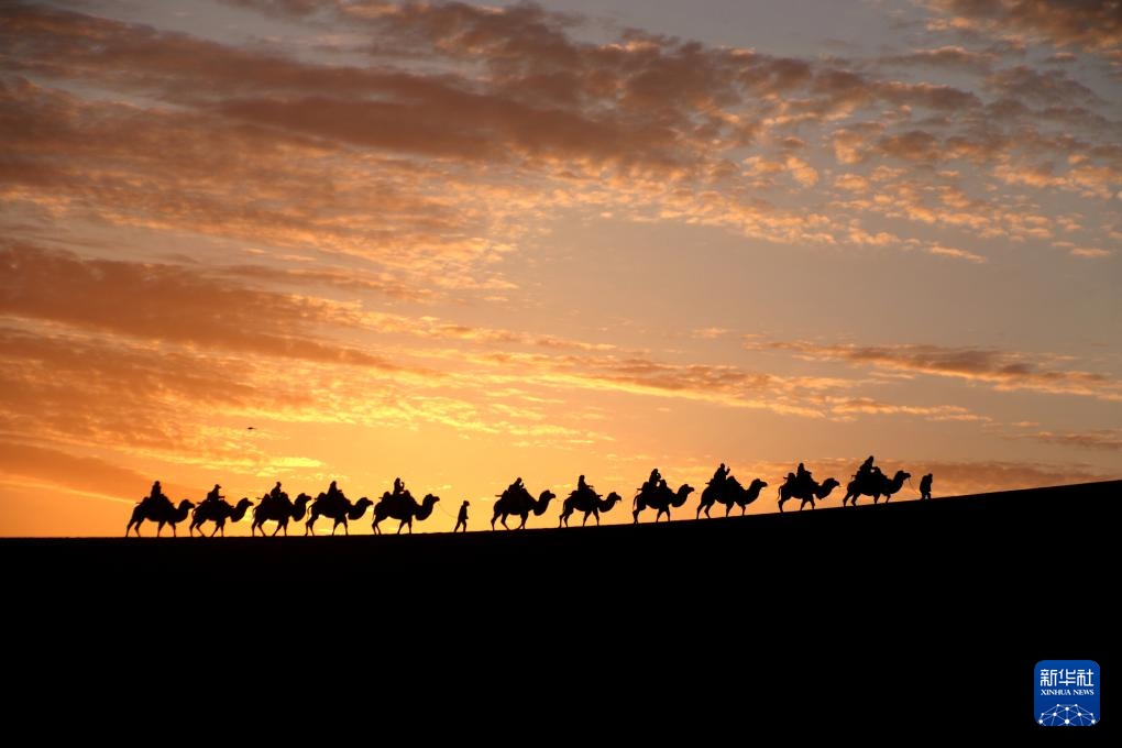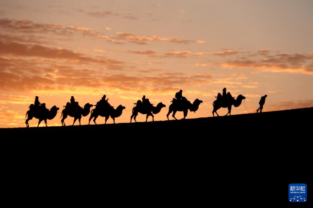 10月4日,游客在甘肃省敦煌市鸣沙山月牙泉景区游览。