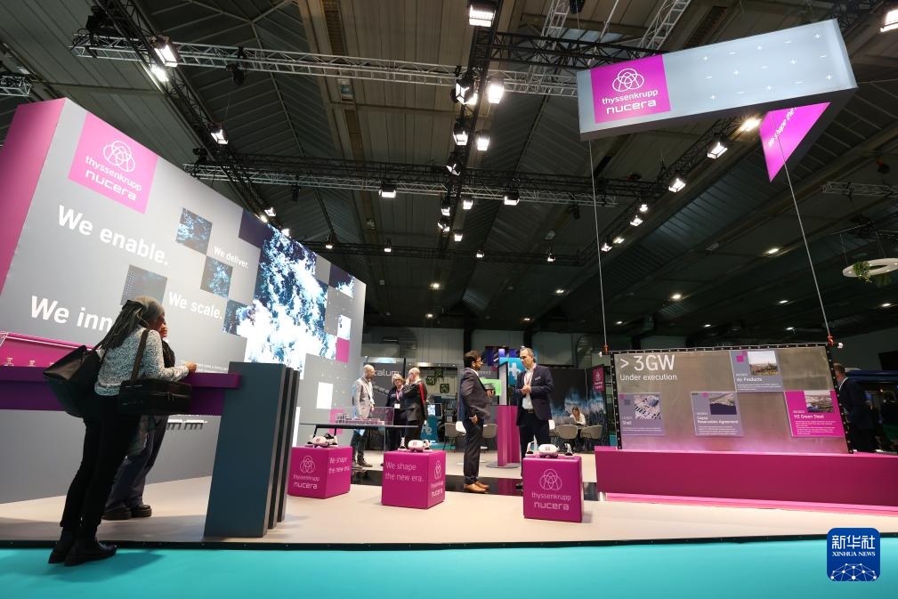 这是11月18日在比利时布鲁塞尔拍摄的欧洲氢能周展会现场。