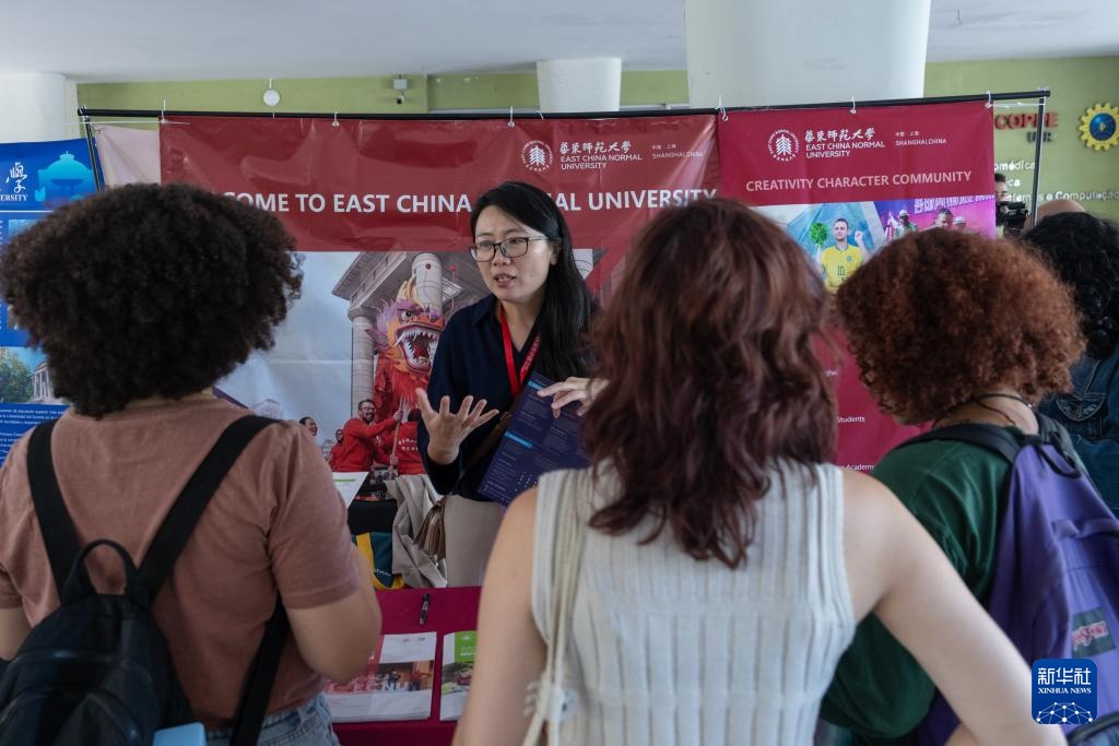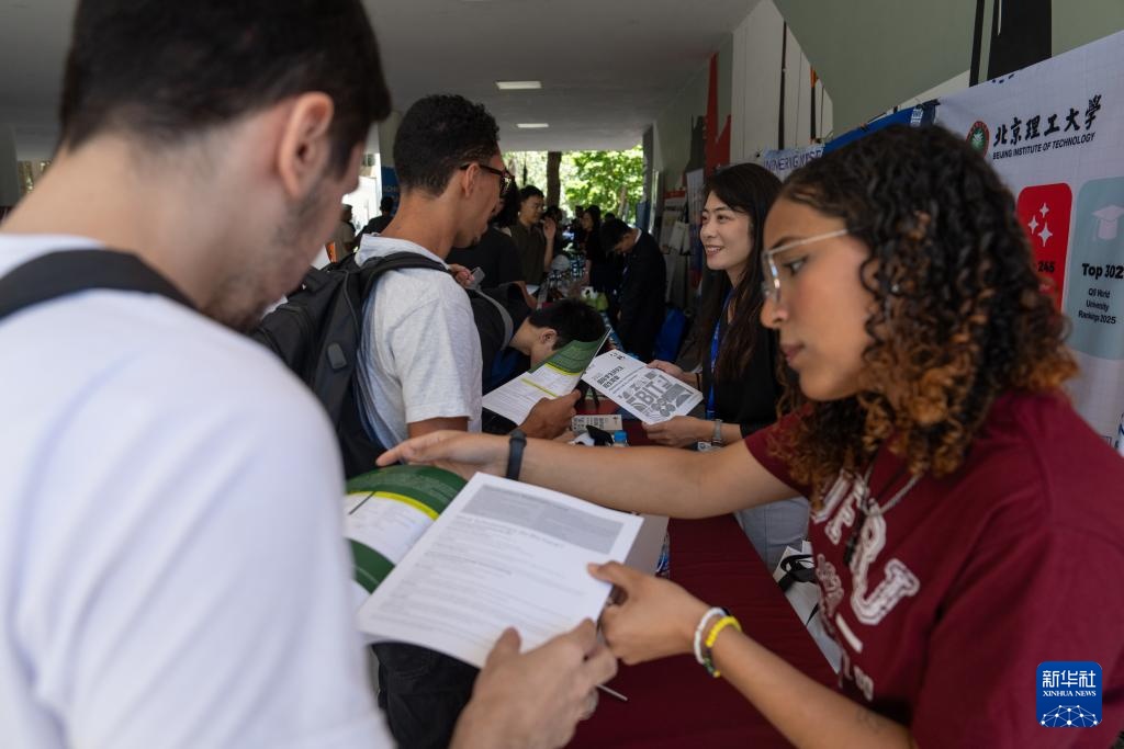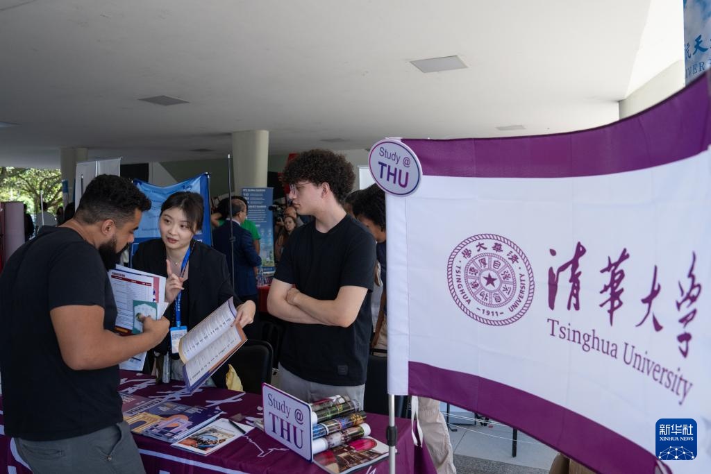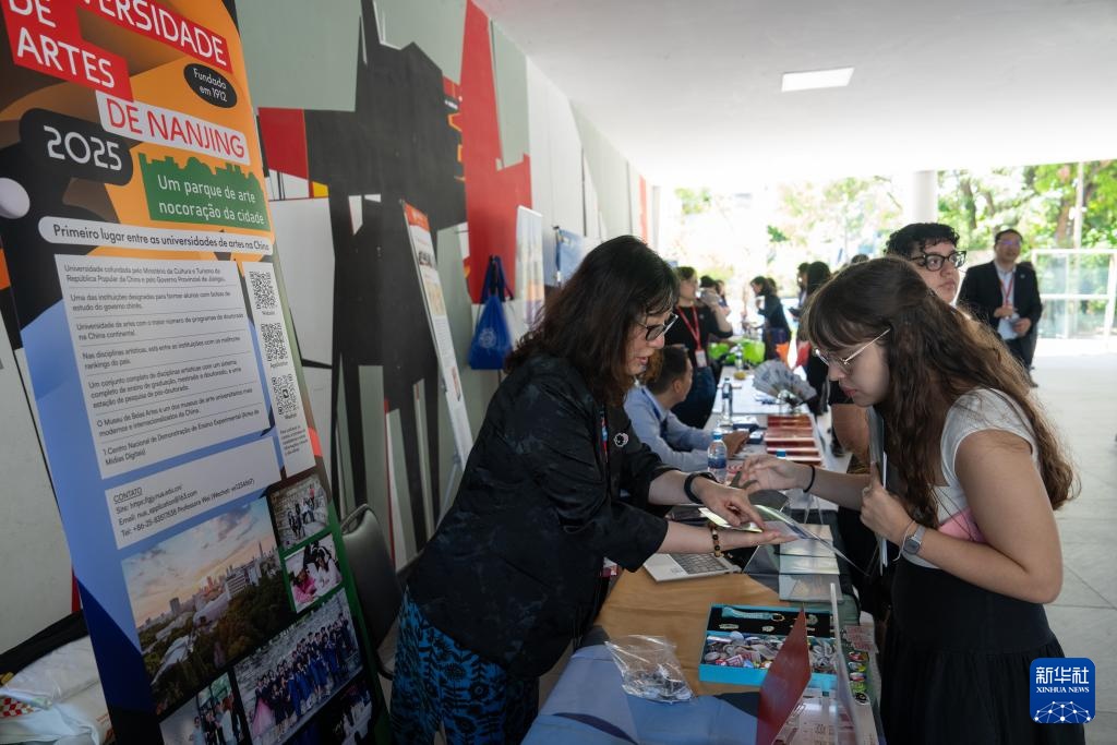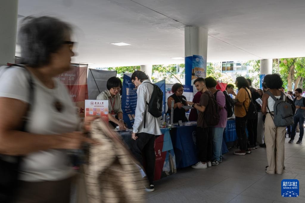 11月25日,人们在巴西里约热内卢联邦大学举办的中国高等教育展上参观。