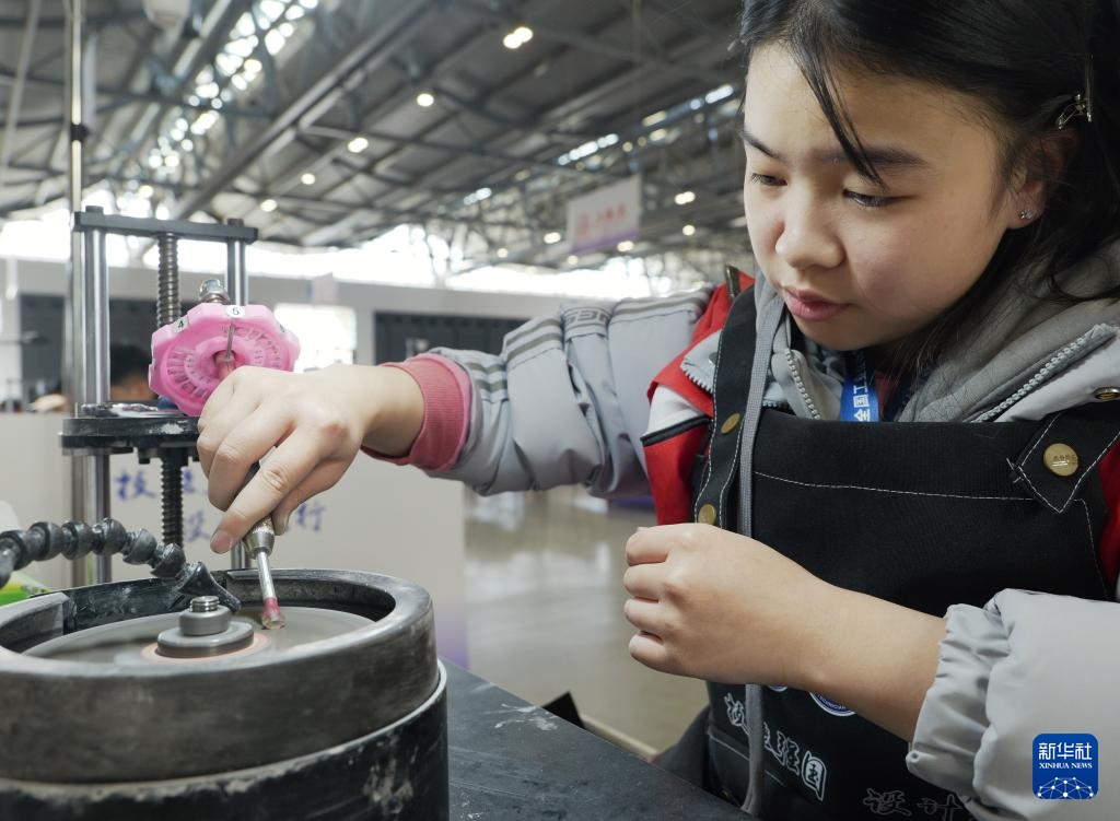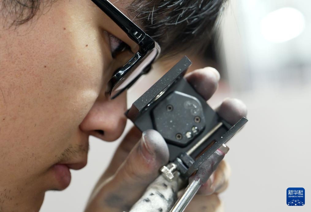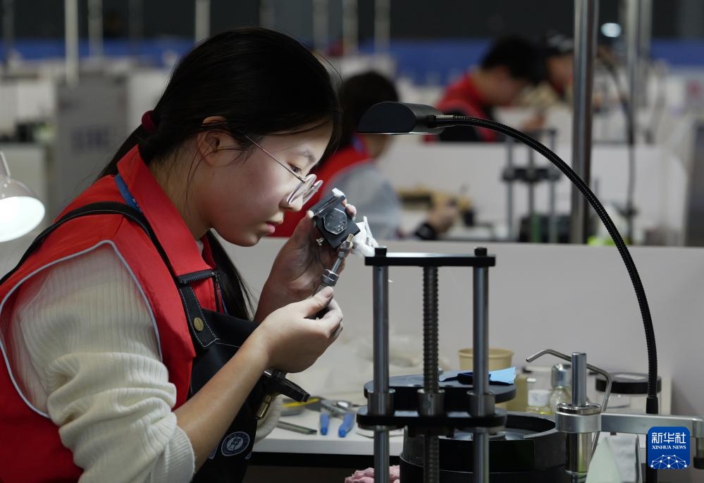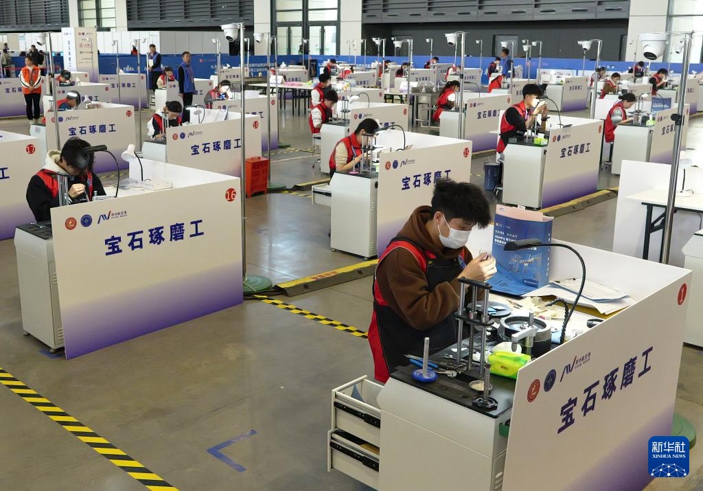 11月27日,选手在宝石琢磨工项目比赛中。