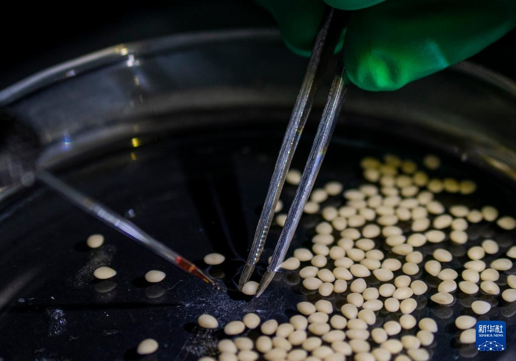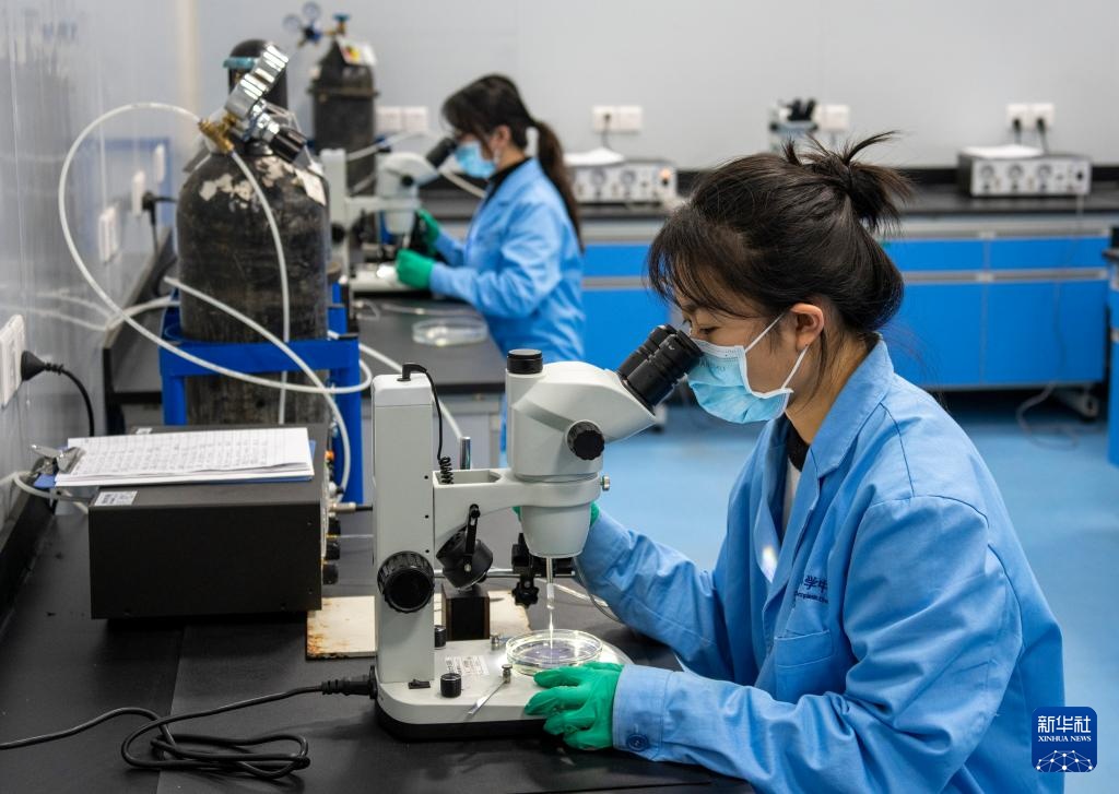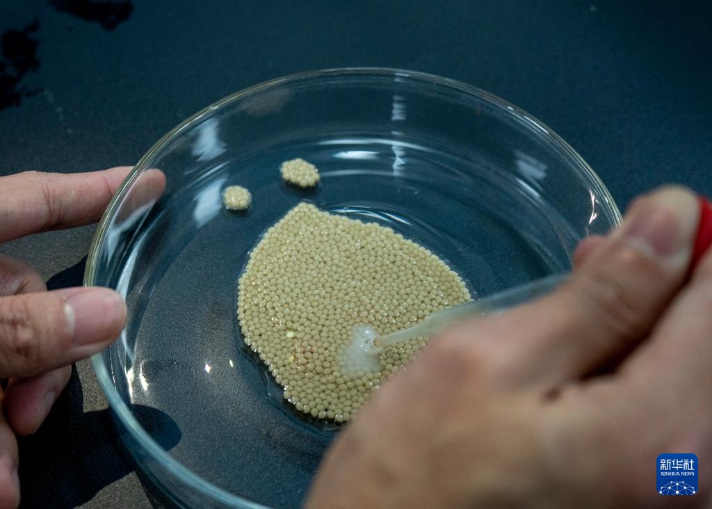 11月27日,在西部(重庆)科学城种质创制大科学中心的实验室,研究人员在为野生罗非鱼卵进行人工授精。