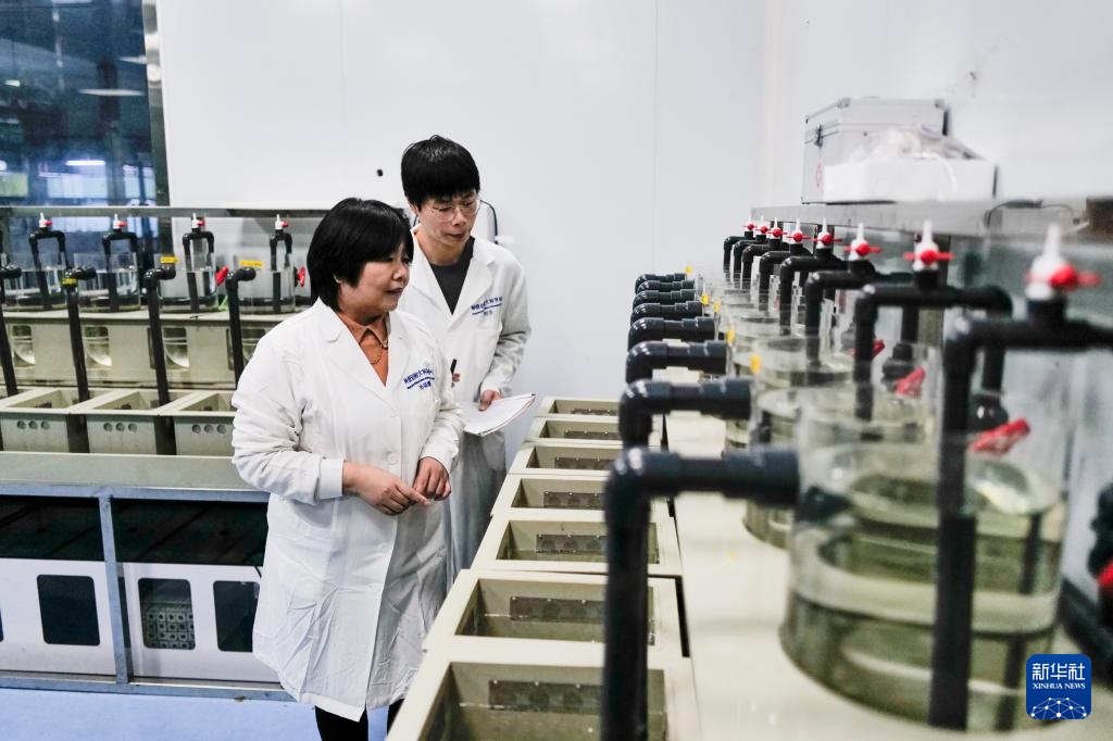 11月27日,在西部(重庆)科学城种质创制大科学中心养殖室,研究人员在对人工孵化的新品种罗非鱼鱼苗生长情况进行日常巡查。