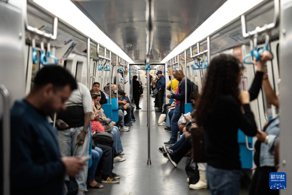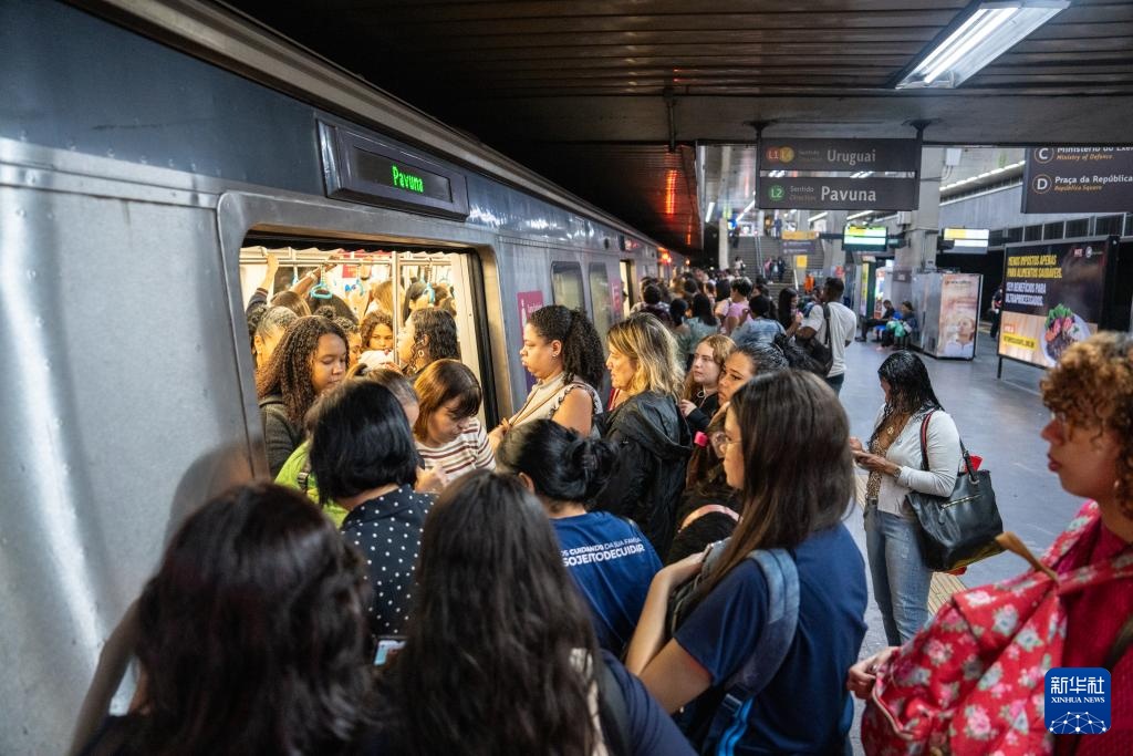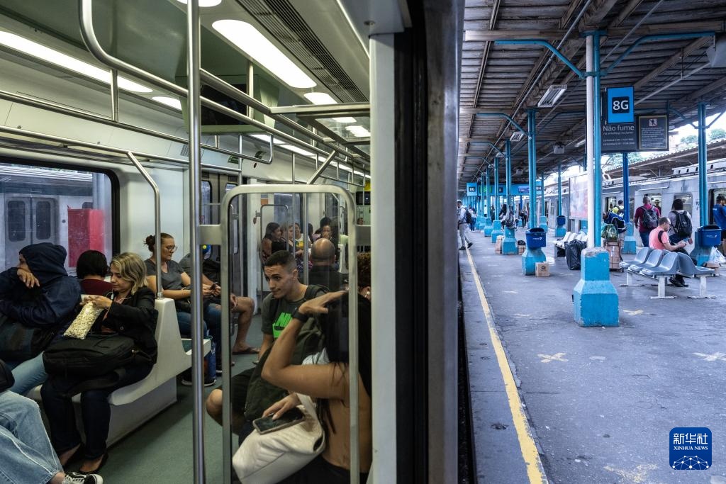 11月13日,在巴西里约热内卢,乘客搭乘一辆由中车长春轨道客车股份有限公司制造的地铁列车。