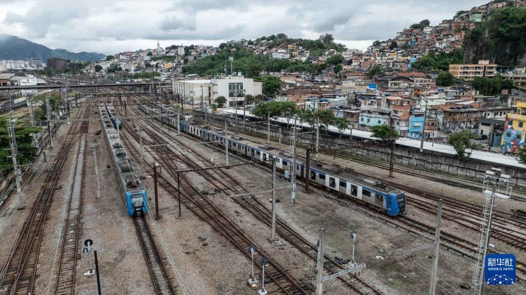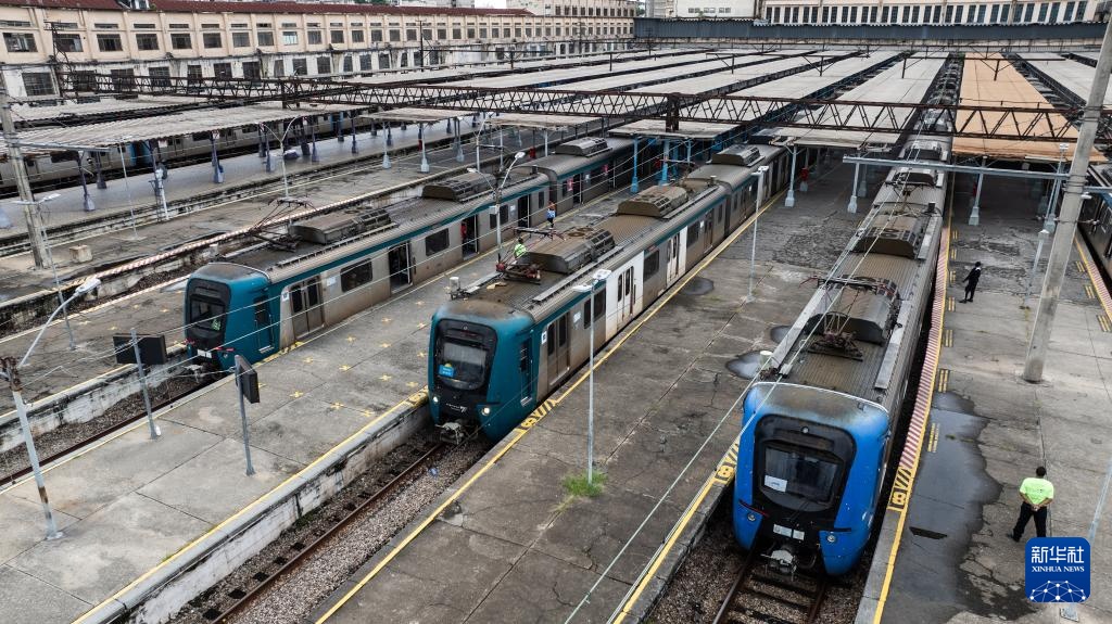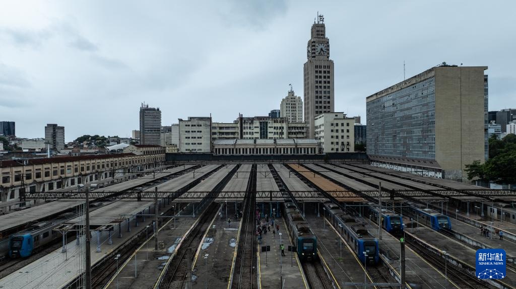 11月13日,由中车长春轨道客车股份有限公司制造的城际列车停靠在巴西里约热内卢中央车站(无人机照片)。