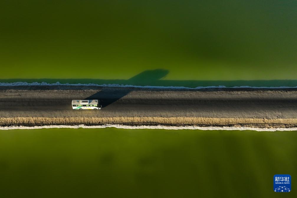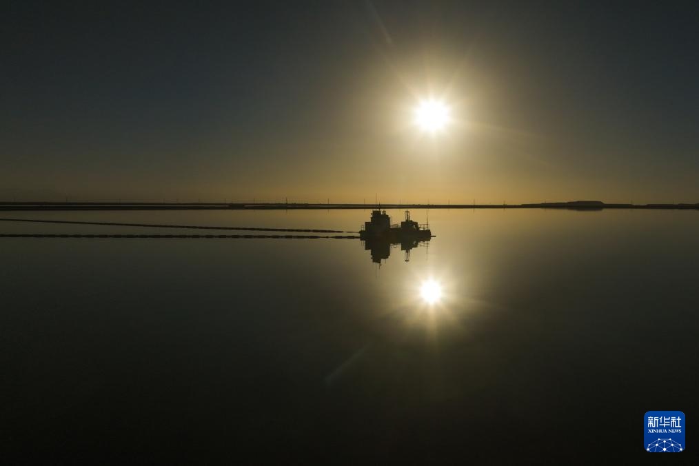 初冬时节,位于青海省海西蒙古族藏族自治州格尔木市的察尔汗盐湖水天一色,风光如画。