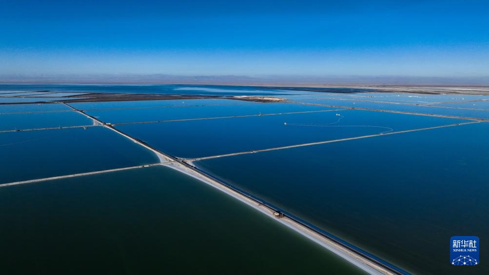 这是11月29日拍摄的察尔汗盐湖一角(无人机照片)。