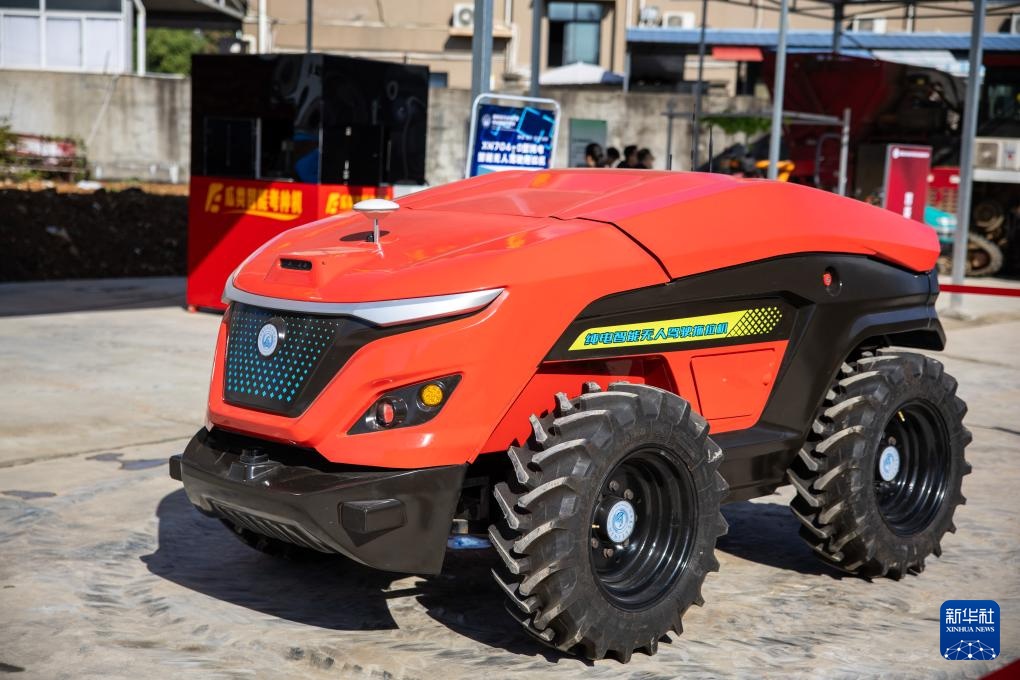 这是11月26日在湖南省农业装备研究所试验基地拍摄的一台纯电智能无人驾驶拖拉机。